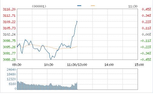 今日兩市低開,早盤滬指在3100點以下窄幅震蕩,臨近午間收盤,煤炭、鋼鐵等發力滬指翻紅站上3100點。截至午間收盤,滬指漲0.22%報3109點,深成指漲0.27報10214點。