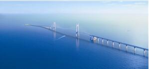 深中通道跨海工程采用东隧西桥方案。(效果图)