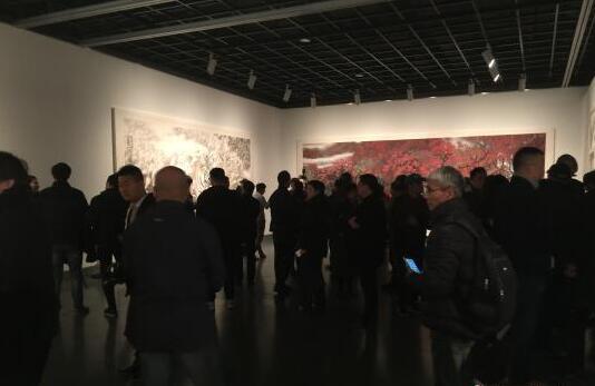 除了民風民俗,一些畫作也云聚了泱泱大國千百年來的家國之“頌”。如畫家王贊創作的7.7X8.8米的《錢江潮——魂》近兩層樓高,表現了中國山河自然風光的壯美磅礴;畫家楊曉陽以15米長的畫幅《絲綢之路·苦水社火》彰顯了絲綢之路上的家國生氣。