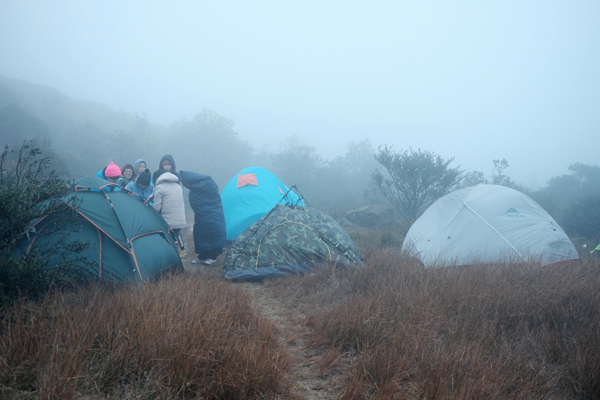 大帽山觀看新年第一晨光,當中包括這批在山頂露營的發燒友。