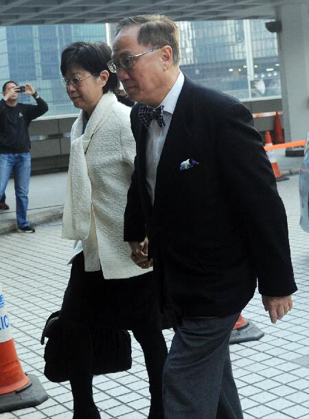 現年72歲的曾蔭權,昨早在夫人鮑笑薇陪同下先到教堂早禱後,於8時15分就扺達高院。曾蔭權胞妹曾璟璇亦於9時抵達高院支持哥哥,開庭前曾與哥哥擁抱,之後坐在庭外透過屏幕看直播。
