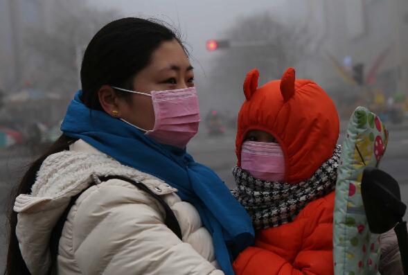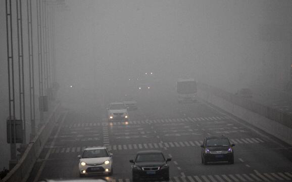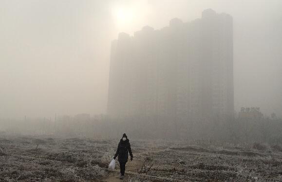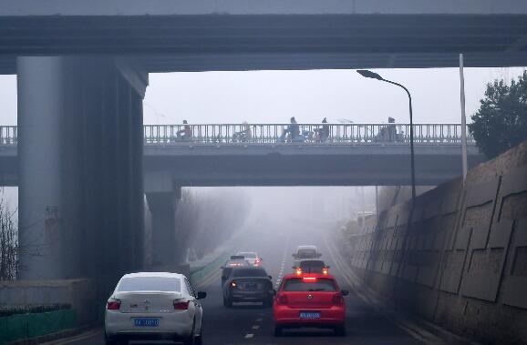 1月4日,河南郑州,雾霾笼罩郑州城区。图为民众雾霾中出行。