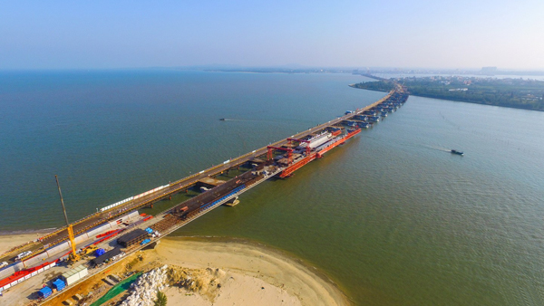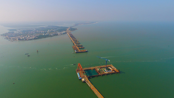 2017年1月3日,海南海口,高空鸟瞰海南省迄今为止规模最大的独立跨海桥梁工程——铺前大桥工程。据了解,海南铺前跨海大桥横跨海南岛东北部的铺前湾海域,项目起点与文昌滨海旅游公路相接,终点与海口江东大道二期工程相接,大桥连接文昌市铺前镇和海口市演丰镇,是文昌木兰湾规划区与海口江东组团对接的关键节点工程。项目路线总长5.597公里,项目批复总投资约30.149亿,建设工期48个月。图/东方IC