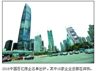 2016年,共有131家房地產企業躋身百億軍團,較2015年增加27家,銷售總額共計5.7萬億元,市場份額已超45%。總部在深圳過百億的房企有:恒大、萬科、華潤置地、金地、招商蛇口、龍光、卓越、佳兆業、華僑城、深業、鴻榮源、星河、深圳地鐵、寶能、花樣年、中洲等。