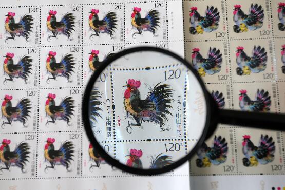 1月3日在山东省潍坊市拍摄的即将发行的《丁酉年》生肖特种邮票。