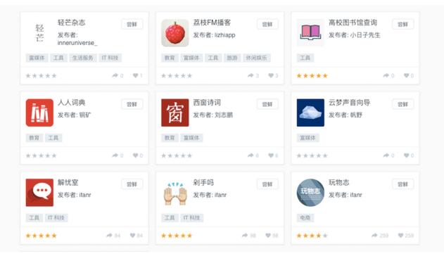 要是想迅速找到大量有趣、實用的小程序,你可以去國內首家小程序商店(minapp.com),裏面聚集了非常多的優質小程序,包括了騰訊、網易、去哪兒、丁香園等公司的作品。