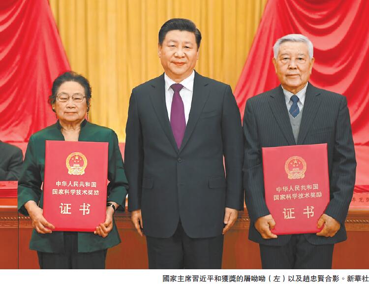 【香港商報網訊】2016年度中國國家科學技術獎勵大會昨日上午在人民大會堂舉行,中國中醫科學院研究員、2015年諾貝爾生理學或醫學獎獲得者屠呦呦和中國科學院物理研究所趙忠賢院士共同獲得國家最高科學技術獎。國家主席習近平為他們頒發獎勵證書,并同他們握手表示祝賀。據悉,國家最高科學技術獎得主每人獎金500萬元人民幣。屠呦呦此次獲獎打破了中國最高科學技術獎的兩項紀錄:第一位女性獲獎者,第一位非兩院院士獲獎者。