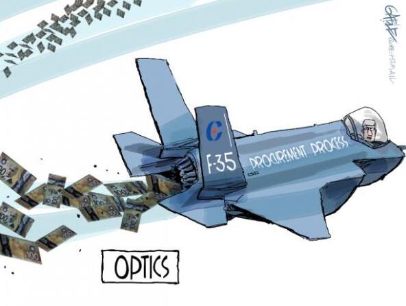 燒錢的F-35確實讓美國及其盟友頭痛不已(加拿大媒體漫畫,諷刺本國購買F-35)