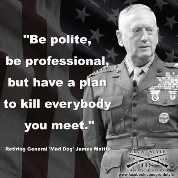 “保持禮貌、保持專業,但要有計劃殺死你見過的每一個人”——馬蒂斯