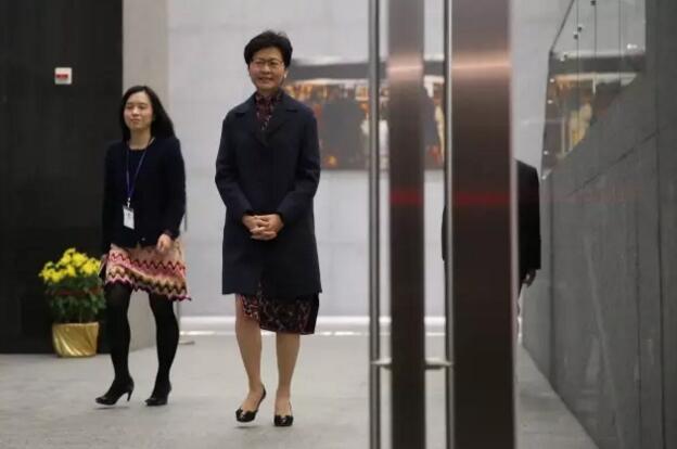 下午5時許,林鄭月娥出現在政府總部西翼大堂會見傳媒,并以中英文方式向傳媒表達其辭職參選的決定和決心。