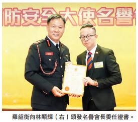 林顯輝為新任名譽會長之一,他表示感到榮幸,亦深感任重道遠,一定會為該區的消防安全多做工作,出錢出力。在分享心得時表示,自己是一名70后,讀書不成,17歲打第一份工,做過office boy、保險經紀,現在做金融及投資生意,經歷過失敗,但永不言敗,才有今天小小的成就。他希望以自身的成長經歷激勵時下年輕人,不要抱怨,應懷着感恩的心。有感近年香港社會被嚴重撕裂,他正在籌備香港青年專業人員領袖協會,將於2月底成立,目前招募了20多名會員,包括全國政協委員、政府官員及行業精英加入,期望2017年香港人人安居樂業,年輕人一起攜手為自己的事業創一番新景象。