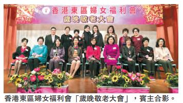 【香港商報訊】記者謝巧玲報道:農历新年將至,香港東區婦女福利會一年一度的「歲晚敬老大會」日前假北角陳樹渠大會堂舉行,一如以往向區內長者大派禮物包,還安排連串精采節目,讓長者提前慶祝節日。社會福利署東區及灣仔區福利專員葉巧瑜應邀主禮,聯同該會主席梁淑莊、首席永遠會長丁毓珠等首長向長者送贈禮物包,超過500名區內長者與友好歡聚一堂,場面溫馨熱鬧。