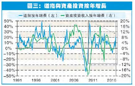 另外,大家要留意BEA資產投資收入去年已跌至按年收縮。資產投資於整體個人收入占一成五,是第三大占比,BEA指出資產投資屬於企業分派的利息收入。如是者,圖三見到,這種收入與道指都出現同升同跌情況。而且,縱使道指直沖2萬點,但其按年增長趨勢卻一直下滑。BEA亦有數據指出美國企業盈利趨勢正持續回落,因此,美國人在未來的投資收入亦有機會收縮。企業盈利跌,道指回調,影響了個人收入,消費市道也不會太好,這在近年消費類的職位增長逐漸放緩都可見一斑。