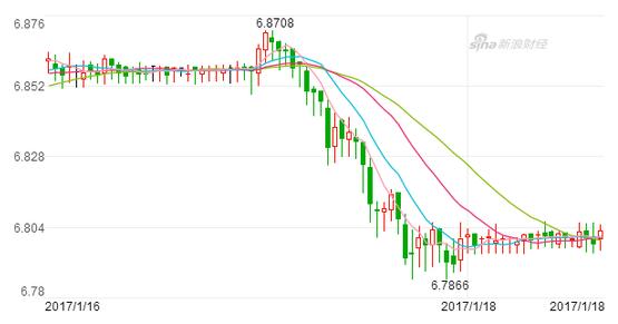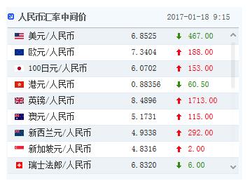 新浪財經訊 1月18日消息,早間外匯交易中心發布公告,人民幣匯率中間價報6.8525,較前一交易日大幅升值467個基點。
