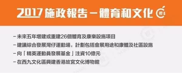 219.我決定大量增加體育設施,在未來5年增建或重建26個體育及康樂設施的項目,包括兩個運動場、9個足球場、1個體育館、4個游泳池場館、兩個草地滾球場、1個單車場、4個網球場、11個戶外籃球場及20個休憩用地共54項設施,總造價約200億元。政府還會為另外15個體育及康樂設施的項目進行技術可行性研究,為開展工程做準備。此外,香港歷來規模最大的啓德體育園的前期工作亦已接近完成。