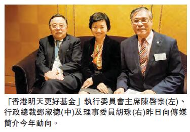 「香港明天更好基金」昨日舉辦傳媒茶聚簡介新一年動向。身兼主席的恒隆地產董事長兼選委的陳啟宗曾表明支持梁振英連任,被問到如何評價梁任內最后一份的施政報告,他指未有時間細閱所以不作評論。對於梁不尋求連任,他說是梁的個人決定,而不論誰人當選,香港仍是福地。集團會視乎風險回報等繼續在港投資。