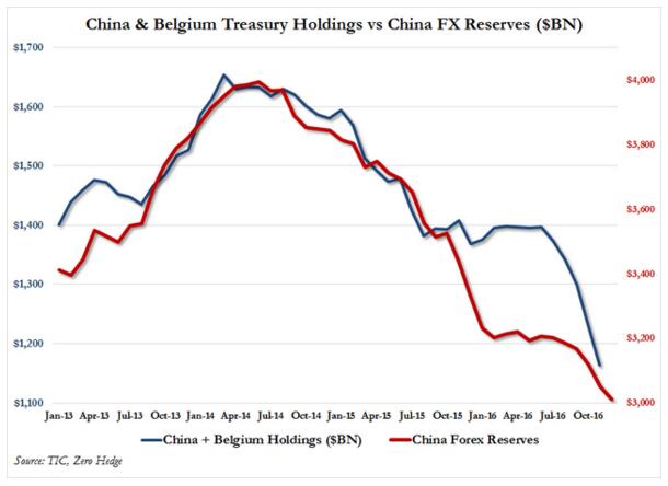 同時,不少市場人士認為中國過去還借道比利時持有大量美債,11月比利時所持美債規模也由1169億美元降至1135億美元。如果將中國和比利時所持美債加在一起,美債合計持有規模環比減少698億美元,幅度和當月中國外儲減少數額相當。