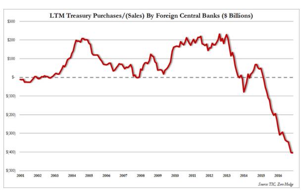 上月公布的數據顯示,在截至10月底的12個月內,海外央行累計拋售美債規模為4030億美元,為當時的最高記錄。