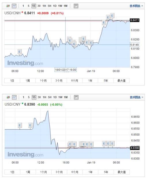 周三,在岸人民幣兌美元16:30收盤價報6.8342,較上一交易日上漲386個基點,盤中連破6.85、6.84、6.83三大關口,創兩個月新高至6.8295,本周在岸人民幣兌美元漲幅已達650點。離岸人民幣兌美元跌幅縮窄至逾90個基點報6.8126,兩岸價差縮窄至170個基點。截至目前,離岸人民幣兌美元報6.8411;在岸人民幣兌美元現報6.8390。