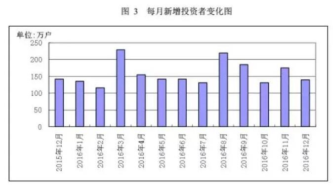 從全年數據看,2016年比2015年增加了19.18萬戶投資者,但增速同比降低了1.44%。