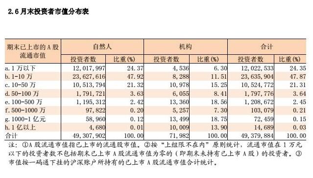 作為一名股民,你需要找到自己的定位,比如持有多大市值、還有多少人跟你并肩作戰。有幸的是,你會發現持有A股流通市值過億的人是“萬里挑一”,不需要太難過。