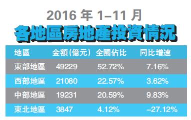 上海财经大学公管学院投资系「中国投资展望」课题组昨日发布《中国投资展望报告2017》称,2016年,中国房地产投资冷热不均,地区差异大。其中,中东部地区房地产投资有所增长,西部地区房地产投资乏力,东北地区更是出现负增长,给全国房地产投资的稳定增长带来一定阻力。