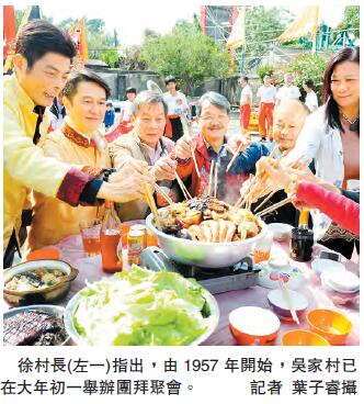 【香港商報网訊】記者葉子睿報道:每年的大年初一,位於元朗八鄉的客家村吳家村都會舉辦傳統的春節團拜活動,今年的年初一(1月28日)更會延開180席盆菜宴,將有逾千人同樂,亦歡迎村外人士參與。吳家村村長徐發堅指出,盆菜宴中將有醒獅麒麟、功夫等表演,并有經開光的三國時代獅頭吉祥物公開競投。