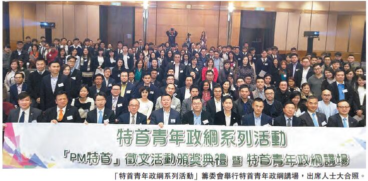 【香港商報网訊】由香港青年聯會與明匯智庫發起的「特首青年政綱系列活動」籌委會,昨午在會議展覽中心舉行「PM 特首」徵文活動頒獎典禮暨特首青年政綱講場活動,400多位青年暢所欲言,充分表達對未來特首在青年政策方面的意見和建議,主辦機構計劃把這些聲音匯聚成一份給未來特首的青年政策建議書,希望未來特首能夠采用,為香港青年未來的成長和發展,創造更為良好的環境。