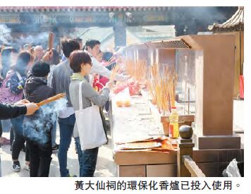 【香港商報网訊】歲晚前夕,長期香火鼎盛的嗇色園黃大仙祠昨日向公眾展示,首次應用於香港廟宇、由園方研發的減烟除味及香灰再生措施,及4部經改良的環保化香爐。有關項目經費經向環保署及環保及自然保育基金申請撥款,各措施現時已花費400多萬港元。嗇色園主席陳東表示,會在農历新年期間會使用這些新設施,希望能發揮改善空氣質素的功效。