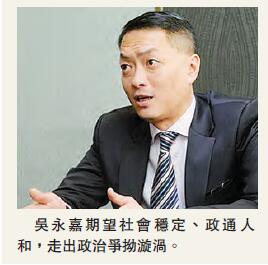 工業界(第二)立法會議員吳永嘉表示,外圍經濟會出現較大波動,但無論政府還是市民,都應未雨綢繆,應對經濟轉差的挑戰。他期望社會穩定、政通人和,走出政治爭拗的漩渦。