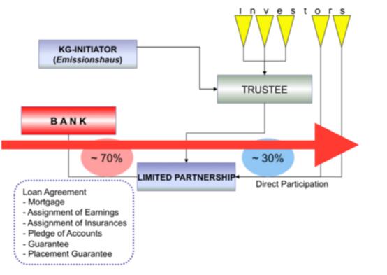 KG不只吸收德國本土的投資、外國的也可以參與,采用有限合伙的方式來運營,通常由一個擔保人來保證投資者的利益,發起人通常為船只經理,銀行貸款以船只作為抵押物,對于小額投資者來說并無風險之憂。簡單來說,KG方案是以傭金制為基礎的追求盈利的天堂。