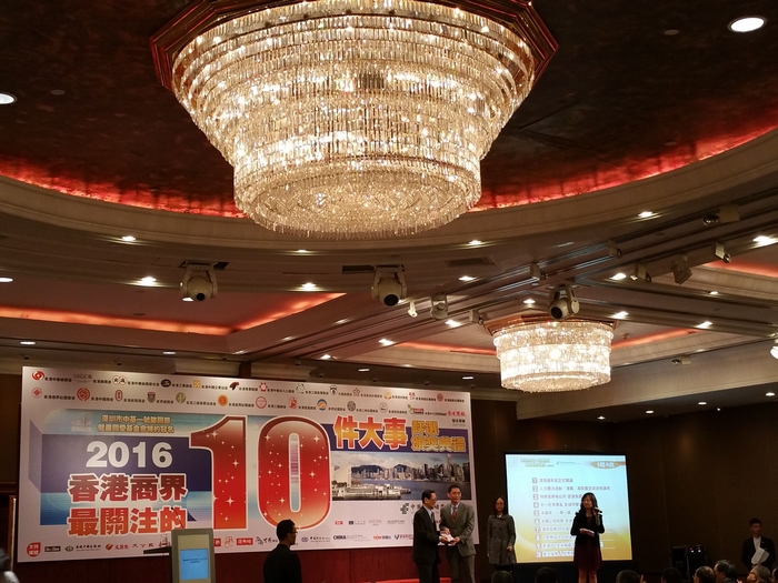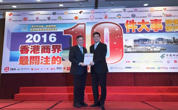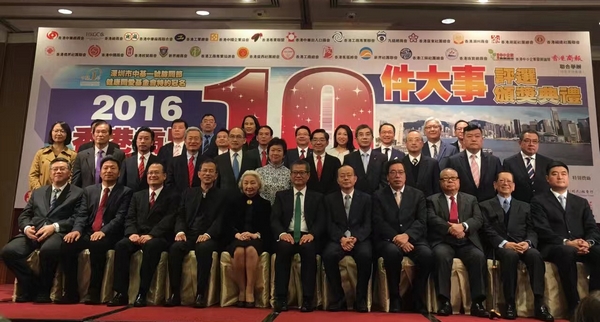 由深圳市中基一号膝关节健康关爱基金会特约冠名,香港商报联同香港中华总商会、香港总商会、香港中华厂商联合会、香港工业总会、香港中国企业协会、香港专业联盟、香港中华出入口商会、香港工商专业联会、九龙总商会、香港广东社团总会、香港潮州商会、香港潮属社团总会、香港福建社团联会、香港侨界社团联会、香港中国商会、香港经贸商会、新界总商会、香港工商专业协进会、香港广西社团总会、香港工商总会、香港客属总会、新界社团联会、香港江苏社团总会、香港珠宝总商会、香港中小企业发展论坛(排名不分先後)等25家本港各大商会、社团,共同举办的「2016香港商界最关注的10件大事」。评选已於1月13日揭晓,颁奖典礼23日下午於香港万豪酒店举行。