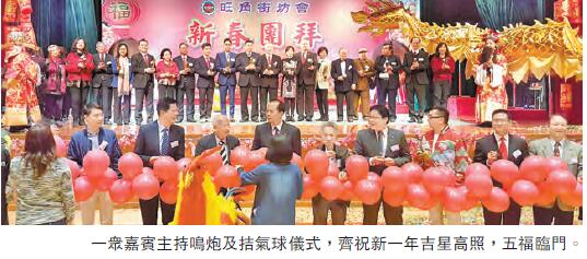 【香港商報網訊】記者吳韻玲報道:旺角街坊會初七在會所舉行丁酉年新春團拜,各界人士歡聚一堂,歡慶雞年新春。旺角街坊會理事會主席梁華勝、監事會主席羅惠珍,中聯辦九龍工作部副部長劉國強,油尖旺民政事務專員蔡亮,油尖旺區議會主席葉傲冬,社會福利署九龍城及油尖旺區助理福利專員陳惠珍等嘉賓齊切金豬,并為醒獅掛紅及點睛,一片喜氣洋洋。