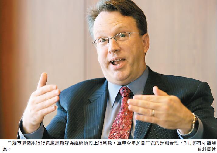 威廉斯指出,相對於較遲加息,較早加息可保留政策彈性,若經濟未如理想,當局可以放慢加息步伐,若出現上行風險,當局亦已準備好加快收緊銀根。與此同時,芝加哥聯儲銀行行長埃文斯亦坦言,去年12月提交預測時預料今年會加息兩次,但情況發展令他改觀,現時認為加息三次也合適,但同時強調貨幣政策正常化的速度應緩慢,以防出現經濟沖擊時需掉頭減息至零。