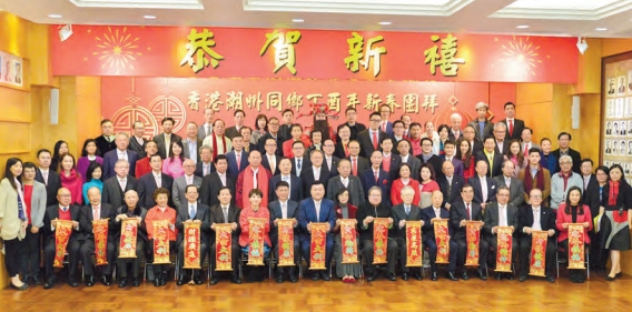 會長胡劍江,副會長林宣亮、黃書銳、高佩璇、鄭敬凱,帶領出席首長、會董、同仁,向居港潮籍鄉親及全港市民拜年,祝大家新年生意興旺、前程似錦、家庭幸福。潮州商會出席的資深會長及常董、會董向來賓及鄉親拜年,互賀新禧。