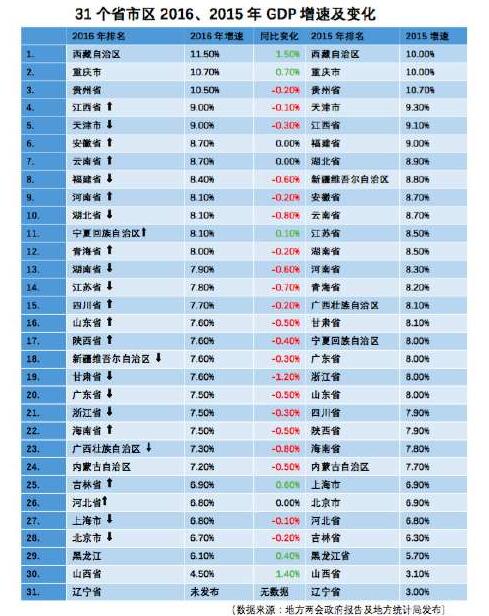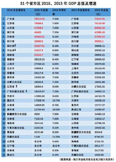根據統計部門的數字,2016年各省區市經濟總量發生了較大變化。