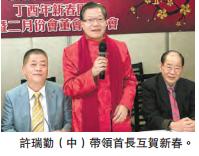 許瑞勤致新年賀辭時表示,今年是鸡年,鸡充滿靈性,為吉祥如意化身,恭祝各位金鸡獻瑞,大富大貴。回顧過去一年的會務工作,他指承蒙多位資深會長、顧問悉心指導,全體會董仝人鼎力支持,會務工作得到長足發展。在社會事務上,堅決支持特區政府依法施政,堅決擁護「一國兩制」及「基本法」,保持社會穩定,發展經濟,取得一定成績,聲譽日隆。