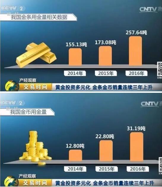 實物黃金作為投資品,銷量增加不僅體現在春節期間,根據中國黃金協會發布的數據顯示: 2014到2016年,我國金條用金量逐年遞增,分別為155.13噸、173.08噸、257.64噸;金幣用金量也是實現了三連增,2014到2016年分別為12.80噸、22.80噸、31.19噸。采訪過程中,業內人士均告訴記者,從近三年黃金購買的數量來看,黃金的投資和避險屬性進一步顯現,黃金投資方式也正變得更加多元化。