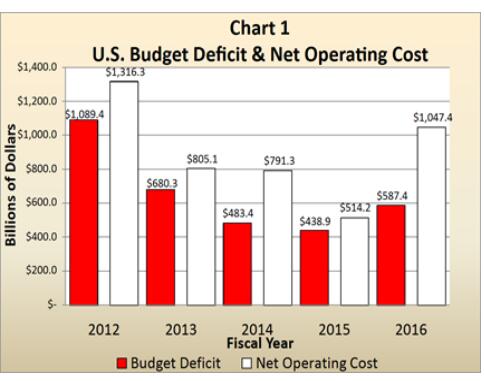 2016財年美國政府的凈營運成本(Net Operating Cost)出現翻番,比上年增長了5,332億美元,突破1萬億美元。
