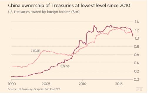 同時,日本的美債持有量則是連續第四個月下降,減少233億美元至1.11萬億美元。另據日本財務省消息,2016年12月,日本投資者賣出美債規模則是創2013年以來最大。