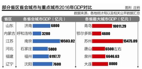 不久之前,山東省青島市宣布,2016年GDP達到10011.29億元,成為中國第12個GDP總量跨越萬億元的城市。但是,山東省會濟南2016年的GDP尚不足7000億元。