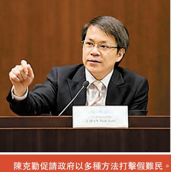 自2014年起,有中介公司和非法集團,透過合法或非法途徑安排「人蛇」來港申請酷刑聲請。截至2016年4月底,尚待入境處裁定的免遣返聲請共有11178宗,惟被入境處裁定為已確立的免遣返聲請僅佔約0.3%。有關數據反映這個酷刑聲請機制,正被犯罪集團及「假難民」所濫用。