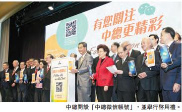 中總亦一直與時俱進,緊貼時代脈搏,透過開設「中總微信帳號」(wechat ID:CGCCHK),為工商各界及會員提供更多元化的即時資訊與交流平台。一眾主禮及台上嘉賓為中總微信帳號進行啟用儀式,一起見證該帳號正式啟用。