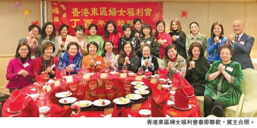 【香港商報網訊】記者謝巧玲報道:香港東區婦女福利會「丁酉年春節聯歡晚會」日前假香港蘇浙滬同鄉會餐廳舉行,該會主席梁淑莊、會長陳趙滿菊等出席,祝賀大家新春快樂、身體健康、家庭幸福、萬事如意!東區民政事務專員鄧如欣及社會福利署副署長(行政)李婉華應邀出席,與該會首長、成員歡聚一堂,共賀新禧,場面熱鬧。