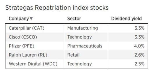 而研究機構Strategas Research則建議投資押注“匯回稅公司”,押注那些能夠將巨額海外資金匯回美國的公司,這其中以醫藥及高科公司為主。