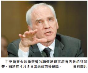 【香港商報网訊】當地時間10日,主要負責金融業監管的聯儲局理事塔魯洛致函特朗普,稱將在4月5日當天或前后辭職。此舉或影響聯儲局未來監管政策走向,金融股聞訊攀升,這也為特朗普可能選擇更鷹派的替代人開啟大門,分析稱至少或對美元有利。