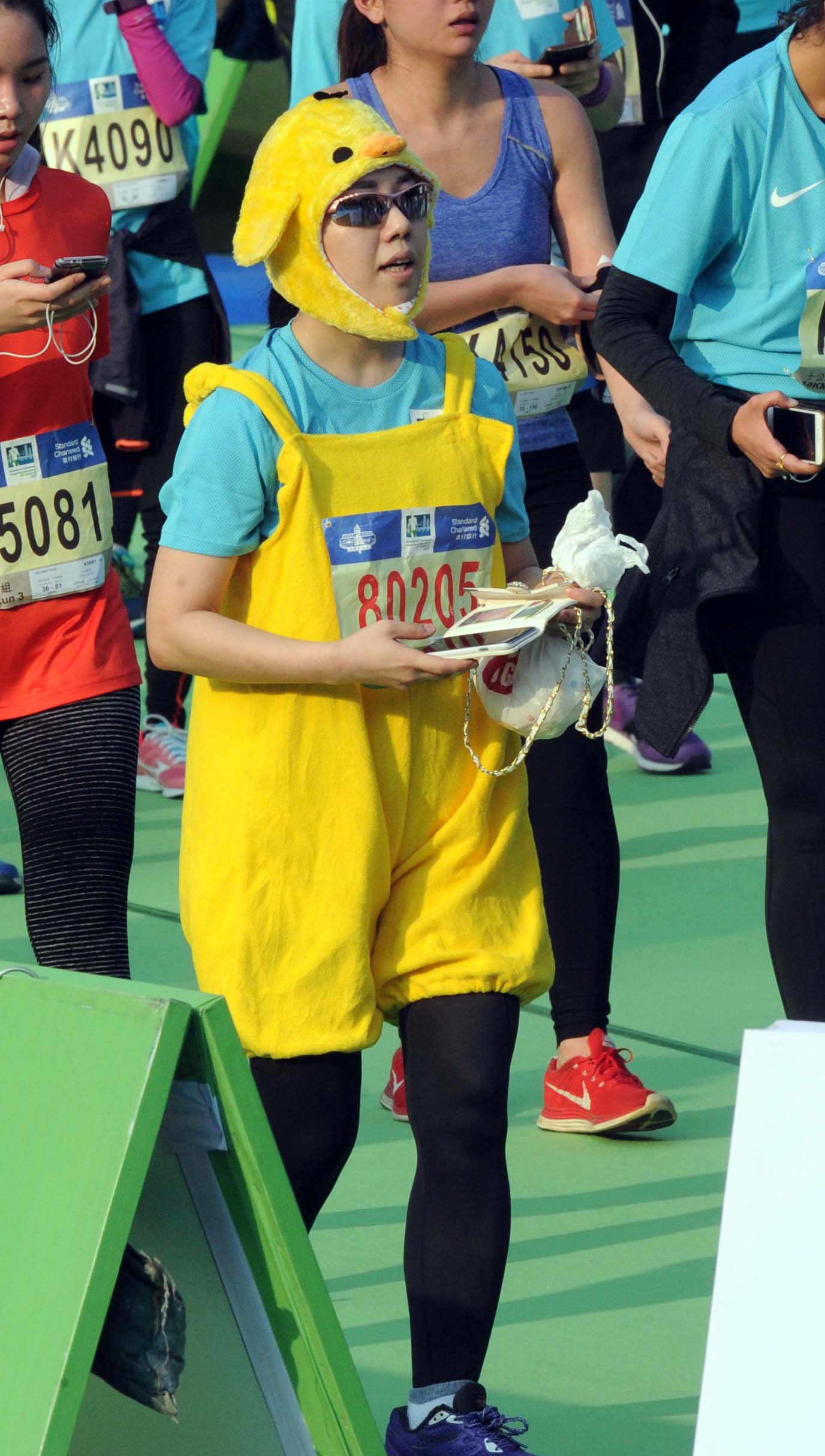 有準新郎馮先生及未婚妻昨日則穿婚紗參與全馬賽事,他們今日將舉辦婚宴。她憶述,兩人在日本參加馬拉松時擦出愛火花,當時她帶病出賽,幸得馮先生照料。昨日是兩人第20次一起參與馬拉松賽事,故兩人特意穿婚紗和禮服參賽,雖然影響發揮,但為兩人留下甜蜜回憶,他們婚後度蜜月選擇到西班牙參加馬拉松比賽,繼續甜蜜地跑下去。