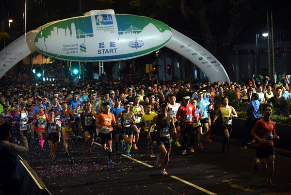 渣打香港馬拉松賽於清晨起步,有近7.4萬名健兒參加。