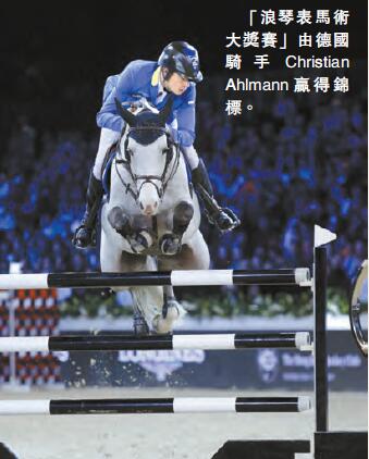「浪琴表馬術大師賽」被譽為「室內場地障礙賽大滿貫」,共分3站賽事,首2站分別於洛杉磯及巴黎舉行,今年香港馬術大師賽繼續成為壓軸賽事,當中媲美奧運級別的「浪琴表馬術大獎賽」昨日上演,由德國騎手Christian Ahlmann以零罰分,擊敗了20多名國際高手,贏得錦標。