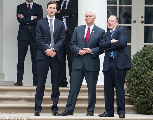 庫什納、副總統彭斯和白宮幕僚長普利巴斯(資料圖)